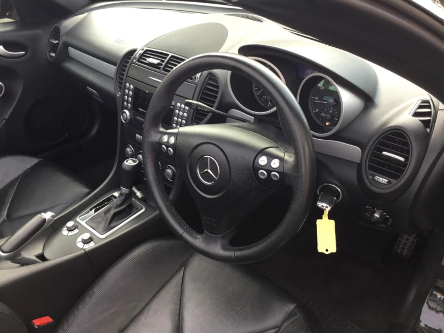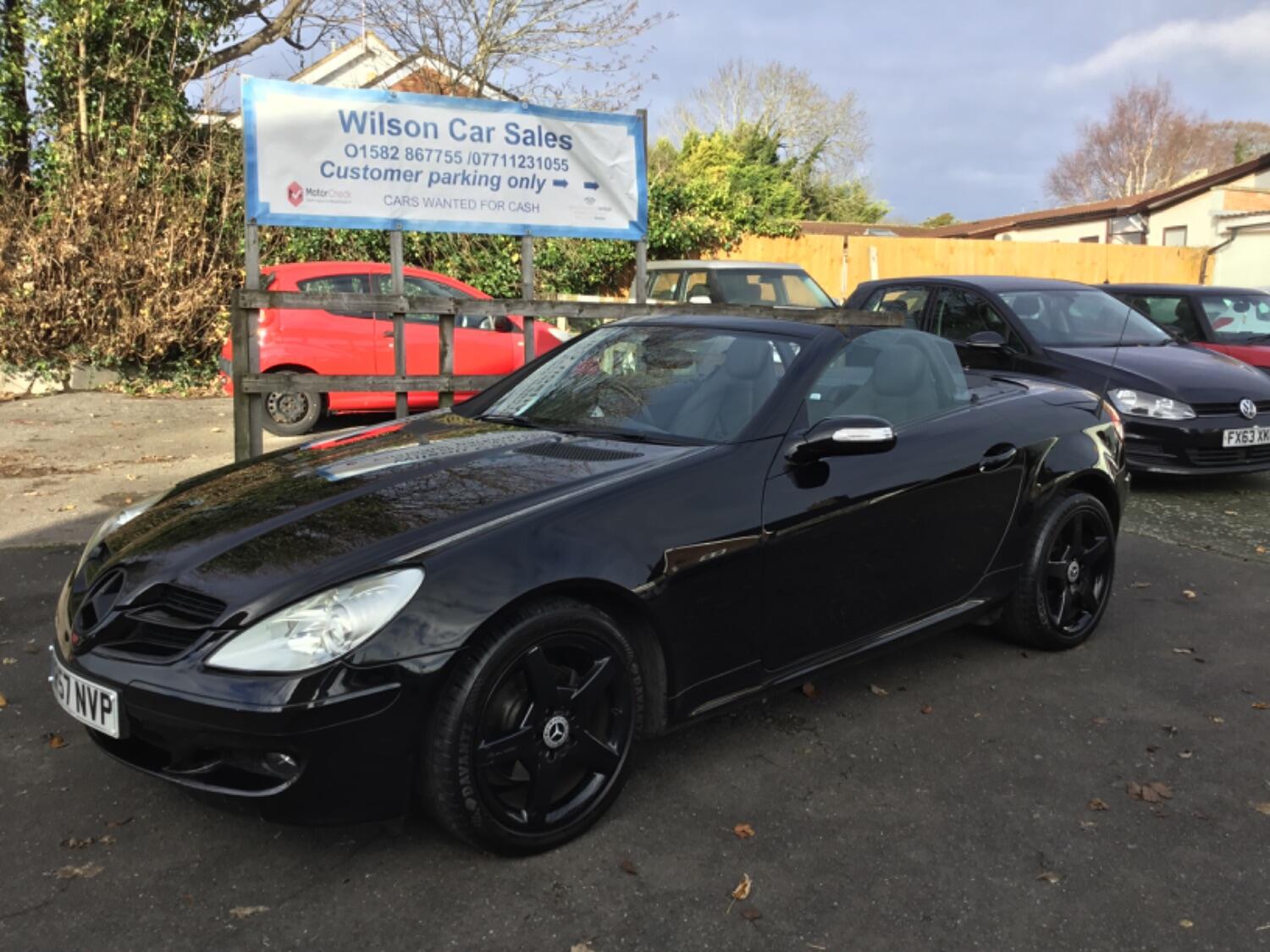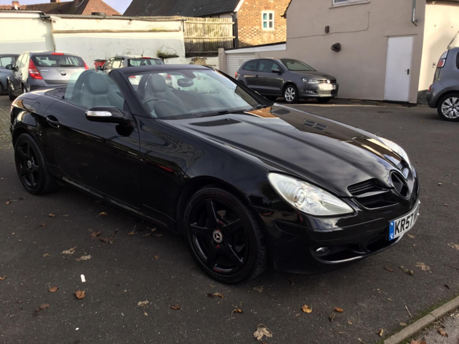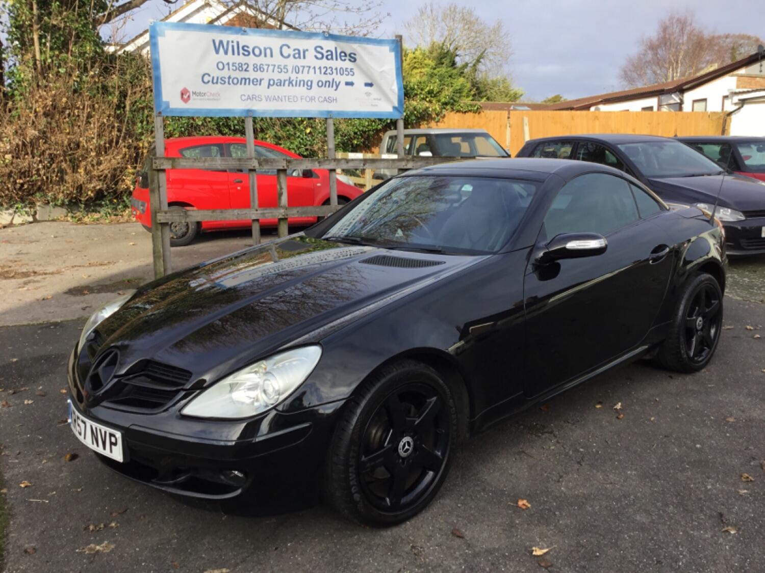 Here at Wilson Car Sales, 07711231055 we have for sale this lovely looking Mercedes SLK 200 Kompressor Automatic finished in Black. This eye catching hard top convertible comes with Black wheels and Black leather interior. It has low mileage at 81,092 miles and has been well looked after with lots of history. It has an MOT until 30 march 2026